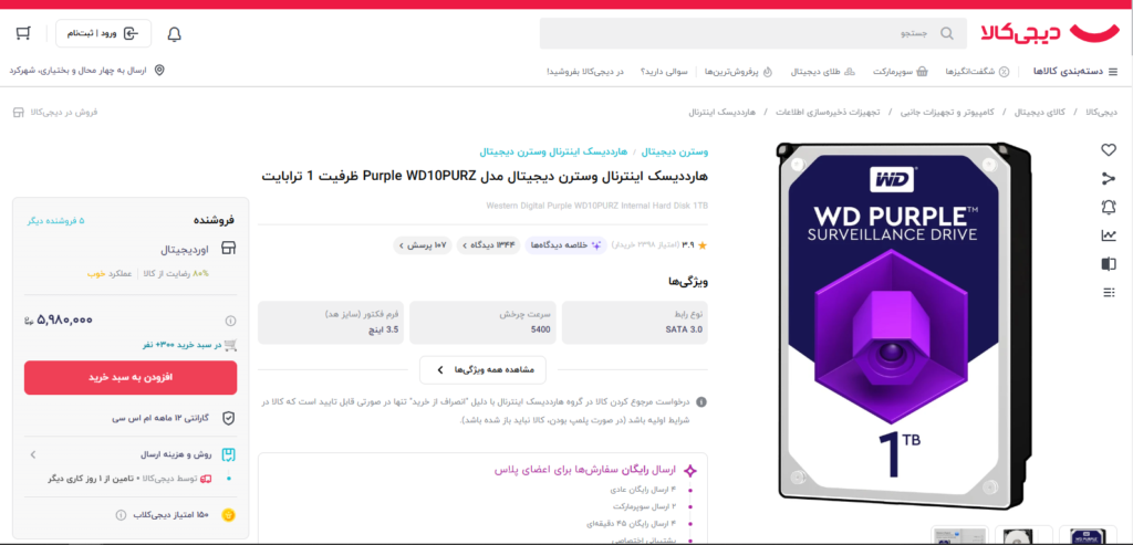 هاردی که برای NVR استفاده میشه تقریباً همیشه اینترنال 3.5 اینچ SATA هست (مثل همین WD Purple).